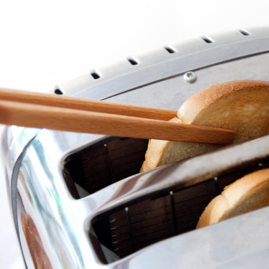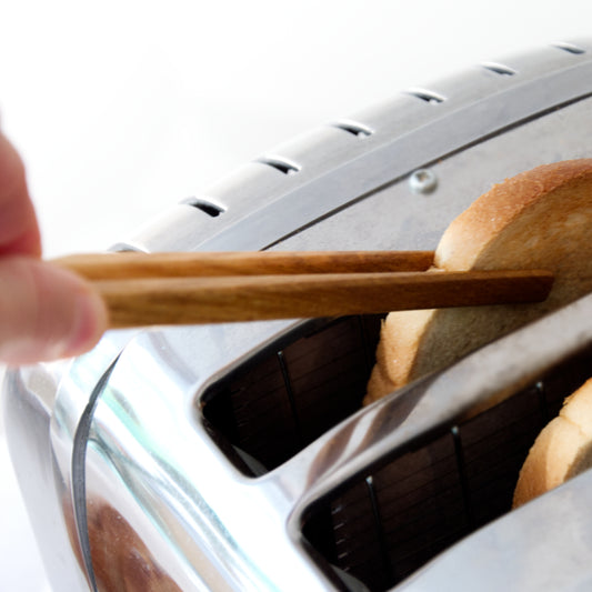 Nach der Produktion werden die Toastzangen von Hand mit einem natürlichen, veganen Holzöl behandelt. Das Öl bietet viele Vorteile: die Oberfläche “entflammt”, das Holz wirkt optisch lebendiger, gleichzeitig schützt und pflegt das Öl das Holz, so behält es seine Natürlichkeit und Atmungsaktivität. Nach dem Ölen trocknet das Holz viele Stunden, anschließend wird die Oberfläche mit einem natürlichen Wachs aus Pflanzen- und Bienenwachs versiegelt. Das Wachs verleiht der Oberfläche einen leichten Glanz, gleichzeitig Geschmeidigkeit und schützt das Holz zusätzlich: für langfristige und nachhaltige Freude an den hübschen Zangen.